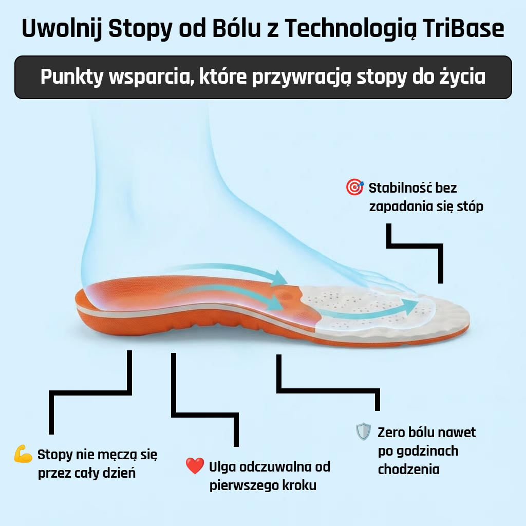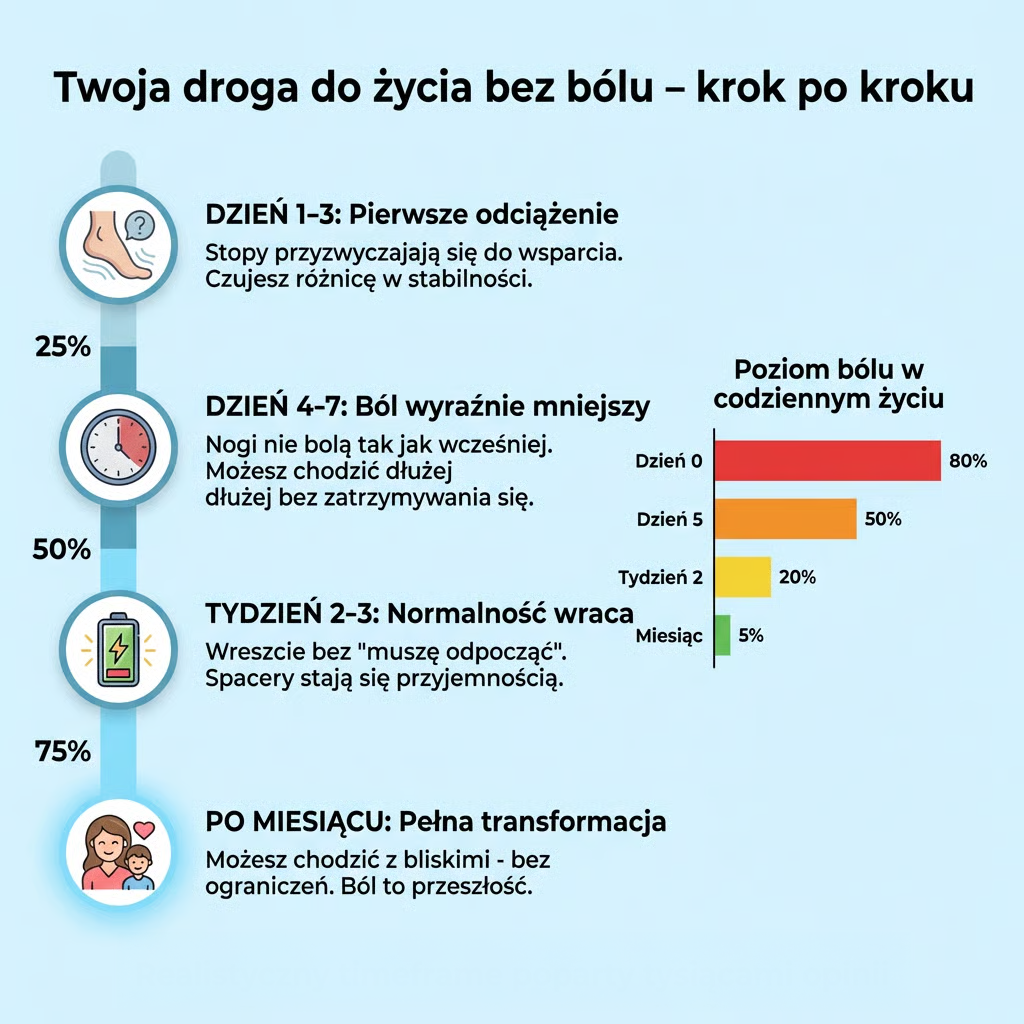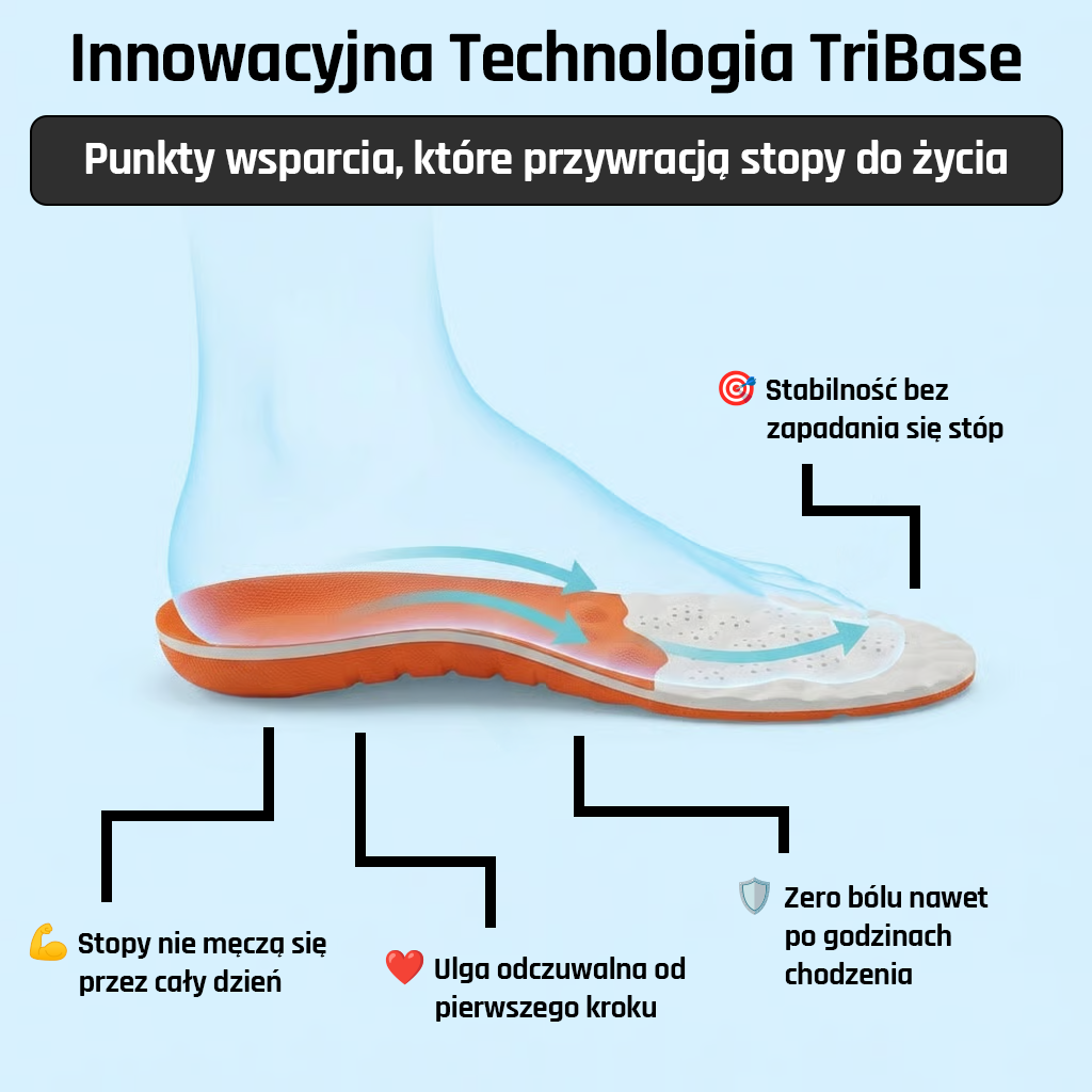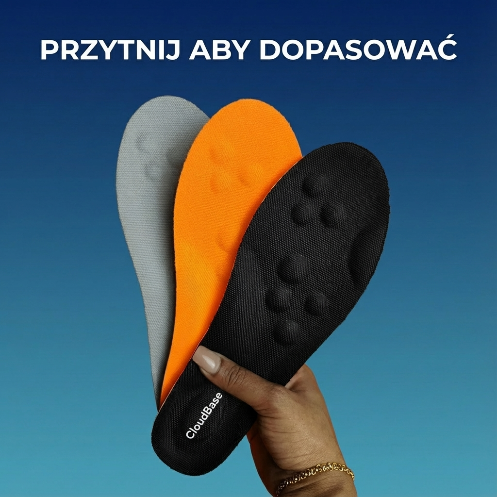 Próbowałaś różnych rozwiązań. Wkładki z Allegro za 30 zł – po tygodniu się spłaszczyły. Żelowe z apteki – stopa się w nich ślizga i męczy jeszcze bardziej. Tabletki – maskują ból, ale problem wraca.